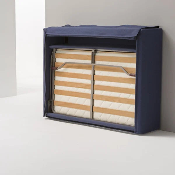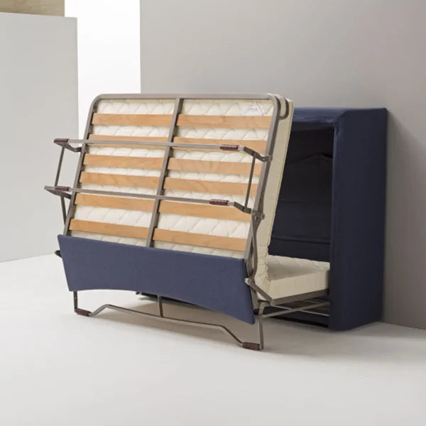 In wenigen Sekunden verwandelt sich DOMO in ein komfortables Doppelbett (140 × 200 cm) mit integriertem Lattenrost und hochwertiger 14 cm Matratze.